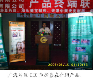 2006年5月15日下午4时,承接本次会议的梅州市国际大酒店的多功能厅门口签到处挤满了前来签到、报名学习的人们,参加本次培训推广会的有来自市区及各县乡的医院、社区服务站、诊所和药店等单位200余个,参加会议的各级领导、医务人员及店员250多人。会议中,广海片区CEO李德喜向与会的同志们介绍了美宝湿润烧伤膏、疤痕平、曲咪新和止痒霜等一系列美宝产品,中国中西医结合学会烧伤专业委员会委员陈永冲研究员则从再生医学的角度,重点阐述了烧伤膏、疤痕平和曲咪新的再生医学机制、作用原理和取得的非凡的临床治疗效果,深深地吸引了各基层医院和药店的同志们,让大家重新认识了美宝再生医学和美宝产品。通过学习,大家对美宝再生医学知识与产品从不了解到了解、从不认识到认识、从不感兴趣到感兴趣,会后很多学员在现场就订货购买再生医学产品,取得了不错的现场销售业绩。通过这次覆盖面广、影响范围大、参会人员多的终端推广活动,有效实现了学术宣传、技术普及和带动市场的目的和效果。
