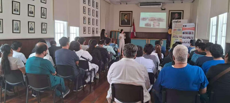 在利马、特鲁希略和阿雷基帕等地还举办了一系列技术研讨会。多名长期应用再生医学技术的资深医生参与了此次再生技术专业交流活动。美宝国际技术部主任徐巍巍系统介绍了再生医学技术的三种主要标准换药方式,对医护人员运用再生医疗技术处理创面的方法进行了系统性规范,从而确保技术应用更加精准、高效。