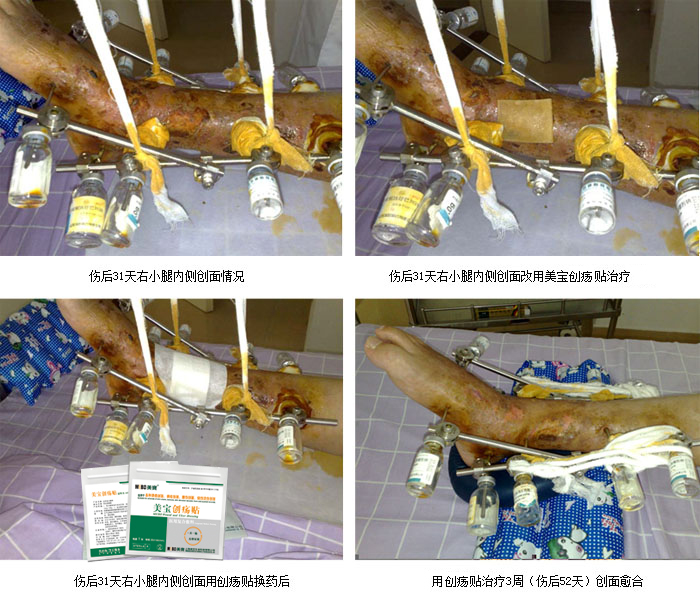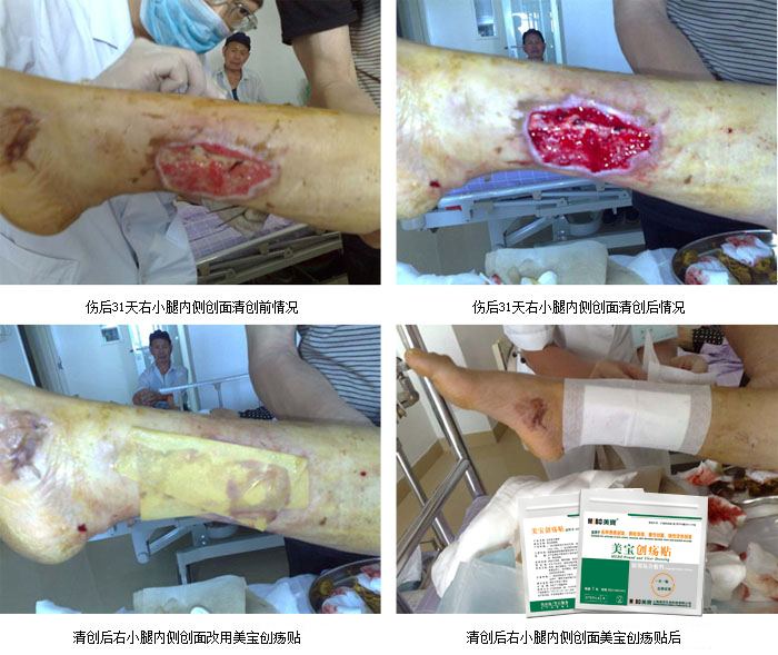 2008年6月12日以来,为使收治四川地震伤员医院的医护人员应用规范的皮肤原位再生复原技术处理合并创伤溃疡的伤员,避免患者的创伤肢体因溃疡创面处理不当遭受截肢之苦,根据皮肤原位再生复原技术发明人、中国中西医结合学会常务理事、中国中西医结合学会烧伤专业委员会名誉主任委员徐荣祥教授指示,中国中西医结合学会烧伤专业委员会常委、北京美宝烧伤创疡研究所副所长、临床总部王洪生主任带着徐荣祥教授为四川地震灾区合并有创伤溃疡创面伤员爱心捐赠的对皮肤、骨科溃疡有独特疗效的美宝湿润烧伤膏、美宝创疡贴等外用药物和医用复合敷料先后3次到福建医科大学附属厦门第一医院杏林分院集中收治四川地震灾区伤员的爱心病区查看伤员,对相关医护人员进行临床传、帮、带,现场示范指导主管医生为合并有创伤溃疡创面的伤员用规范的皮肤原位再生复原技术为伤员溃疡创面换药,所有合并骨科及皮肤溃疡的创面运用皮肤原位再生复原技术并改用美宝创疡贴或美宝湿润烧伤膏油纱(MEBO油纱)换药治疗3周后,大部分溃疡创面愈合或基本愈合,较大的骨外露创面也明显好转,创面正在愈合中,从而避免了因创面处理不当给患者造成截肢之痛。