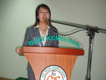 会议中,身着显著MEBO标志的印度尼西亚美宝营销公司的工作人员穿插服务在会场和各种招待场所,与会人员人手一册显著MEBO标志和印着MEBT/MEBO疗效图片的工作手册,会议洋溢着印尼医务界对MEBO崇尚的氛围。