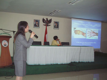 参加这次学术研讨交流会的是印度尼西亚最具影响的30余名顶级外科医生,会议主要讨论治疗各类外伤的经验。美宝集团境外经营总部技术主管李晓辉对美宝的原位再生技术、配套的系列产品以及治疗经验做了精彩的演讲,当介绍到MEBO原位再生技术在烧伤、创疡方面的应用方法和显著临床治疗效果时,引起了全场医生的极大兴趣。演讲刚刚结束便引发了他们的积极提问和讨论,整个会场气氛一下热烈起来,学术会议成为MEBT/MEBO的专题讨论会,集团技术总裁肖摩教授一一回答了在座医生的咨询提问,使我们感到惊讶的是,印度尼西亚外科医生所提出的问题基本上涵盖了MEBT/MEBO临床应用中经常出现的问题,从创面液化期的处理、感染创面的鉴别、原位再生医疗技术在全身系统治疗中的应用以及原位再生物质的来源等问题。同样也是在国内临床实践中常常遇到的一些问题,说明原位再生医学及技术已经在印度尼西亚的医院中得到了比较广泛的认知和应用,并产生了深刻的影响。