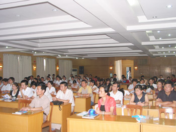 培训班在余杭市中医院和金华市中医院学术报告厅举行,到会的学员有两个地区各级医院及基层医疗机构的医务人员各200余人,中国中西医结合烧伤专业委员会副主任委员胡栋才教授在学习班上作了“再生医学医疗技术在临床的使用”、“烧伤皮肤再生医疗技术的临床操作规范应用”、“再生医疗技术在多学科的临床应用”报告,参加的学员听的认真、记得仔细,学术气氛浓厚,报告后很多学员提出临床规范应用问题及美宝系列产品的有关问题,胡主任分别一一给予了解答。学习班虽短,但是大家获益匪浅,对再生医学的认识和临床规范应用都有了很大的提高,大家表示今后在临床中规范应用烧伤皮肤再生技术,去造福于患者。