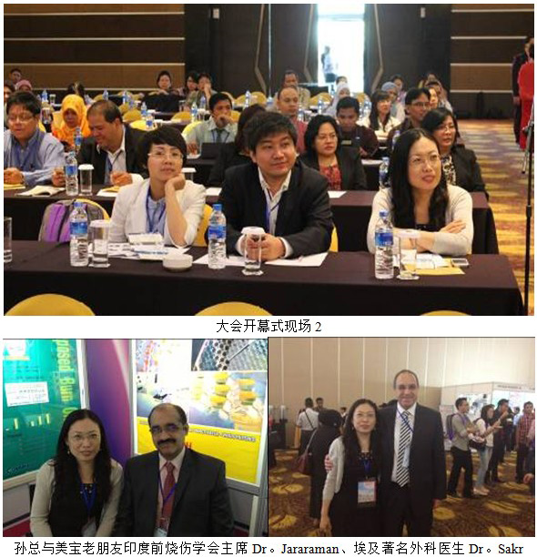 大会的首日大会主题演讲有4个,其中3个详细讲述了美宝再生医学在各种创面的治疗效果和机理。来自埃及的Prof. Mahmoud Sakr是本届会议的第2位主会场专题演讲者,他比较了300多个各种创面使用MEBO和传统治疗手段的差别,用科学的统计方法对结果进行了详细的分析比较,得出“美宝是各种创伤创面治疗的首选,在愈合质量上有明显的优势!”接下来希腊专家讲述了其临床中心进行的200多例美宝临床试验,这是我们在欧洲进行的严格的临床试验,严谨科学的分析对比和令人信服的结果,令在座的专家折服!第3个是印尼当地的美宝再生医学专家,她用印尼语详细介绍了在她的医院使用美宝的情况。接下来的两个分会场进行的学术交流,美宝再生科学在烧伤、糖尿病溃疡、褥疮等方面的介绍此起彼伏,一天的演讲下来,会场几乎所有人都在讲述、询问或者讨论再生医学,并深深折服于美宝在这些领域取得的结果。首日的再生医学专题演讲共有7场,演讲时间累计超过3个小时。参会的所有专家、医生甚至参展商,包括印尼排名的第一的医药公司Karbel都笑着说:“今天的会议成了美宝的专场了!”