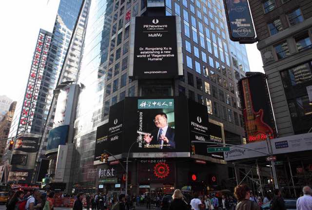 纽约时代广场大屏幕报道徐荣祥科学中国人杂志封面照巨照