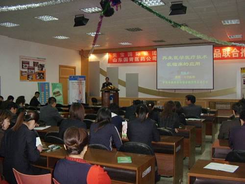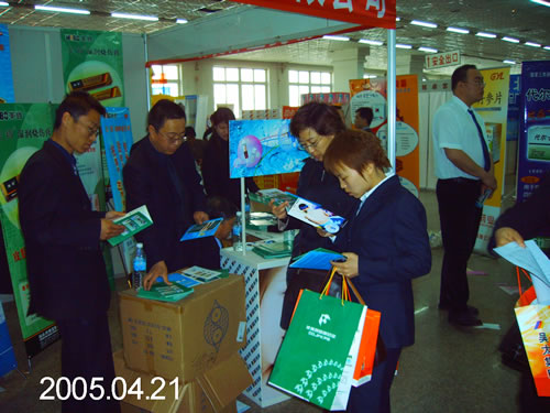 [2005年4月21日,辽宁锦州] 春风送暖,万象更新。美宝医药集团辽宁省区域业务人员在总经理周福深的带领下,参加了由辽宁省康莱医药公司举办的锦州市医药产品定货展销会。会议现场,经过统筹规划,布置了各种宣传企业和产品的展具,并发放了丰富的宣传资料,营造了活跃的气氛,还特别邀请了中国中西医结合学会烧伤专业委员会的学术医疗部金主任举办了现场技术讲座,吸引了大量经销商和医院客户。