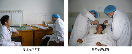 10月28日德阳市某磷厂发生爆炸事故,多人出现伤情,其中有三名面积较大的磷烧伤患者送到了东方汽轮机厂医院,时间就是生命,病情就是命令,加之工伤的社会效应,政府、事故厂方及东汽医院都十分重视。一方面成立以烧伤科吕金寿主任为组长的抢救小组,积极的制定抢救方案并组织实施抢救;一方面通过四川地方美宝向北京求援,请求中国中西医结合学会烧伤专业委员会的技术援助。中国中西医结合学会烧伤专业委员会方进勇主任赶往该院,加入到抢救行列之中。磷烧伤属化学烧伤,它不但引起皮肤局部伤害,而且更重要的是人体吸收后可造成重要脏器的损害,包括肾、肝、心等。