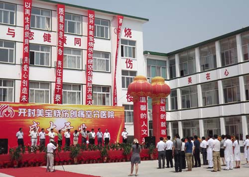 缤纷绚丽的礼炮、欢快祥和的音乐,喜气洋洋的热闹气氛,点缀出一个吉祥热烈的初夏盛典现场,开封市政协副主席蒋忠仆、开封市人大科教文卫主任王金荣、开封市人民政府副秘书长张宛红、开封市卫生局副局长呼新伟、开封空分集团公司副总经理刘威、美宝国际集团总裁杨智斌等领导出席典礼并讲话。参加典礼仪式的还有来自中国中西医结合学会烧伤专业委员会主任委员肖摩教授、河南大学附属南石医院院长赵俊祥教授、河南煤化永煤集团总医院田宗皎院长、中南大学湘雅第三附属医院烧伤科主任博士生导师罗成群教授,开封市第一人民医院李华强副院长到会并参加了剪彩仪式,来自开封空分集团等企业界、各级医院同仁、河南省电视台、开封电视台、开封日报、卞京晚报等媒体记者朋友200余人欢聚一堂,共同见证了这一美好的历史时刻。