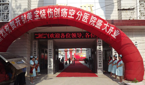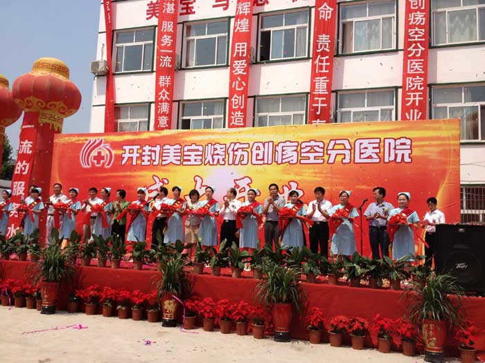 风和日丽,彩旗飘展,红狮威武,鞭炮齐鸣。2012年6月16日,来自四面八方的领导、宾朋汇聚在中国历史名城—开封,都为了庆祝一件共同的盛事----开封美宝烧伤创疡空分医院开业庆典。