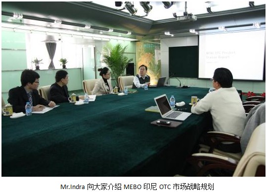 15日上午十点,Mr. Michael Wanandi及Mr.Indra J.Santana如约来到了美宝总部多功能厅会议室,国际市场集团市场总监刘钢携技术总部主任王艺霏以及印尼区域经理吴云热情地接待了来访的客户。上午的会议议程非常紧张,会谈的要点众多,但是整个会场的气氛非常的友好且热烈。首先,Mr.Indra简单回顾了美宝印尼市场的发展历史,特别是2011年的发展状况,随后向大家展示了未来美宝在印尼OTC市场的发展规划。经过印尼尼尔森咨询公司的详细调研和数据分析,美宝在印尼OTC市场存在独特的优势和巨大的发展空间。吴云经理向客人介绍了去年美宝印尼开展的重大活动,并提出了明年的工作目标和规划。刘总对Mr.Indra提出的OTC计划表示赞同,并表示美宝在印尼的发展应继续保持高速发展的势头,不能受到任何第三方的阻挠,所有市场活动必须以市场高速发展为目标。Mr.Michael Wanandi提到自2010年首次访问美宝并与徐荣祥教授会见以来,一直对美宝的技术和产品非常的关心和重视,他的家人也是美宝产品的受益者。去年接任公司总裁以来,他更加注重市场终端经营业绩,并由他自己牵头提出了此次OTC计划,将继续加快加大对美宝技术产品的投入。