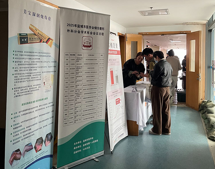 2025年10月25日,盐城市医学会烧伤整形外科年会在盐城市第一人民医院召开。会议邀请省内外专家参与授课和讨论,全市各县区近40人参加。会议内容涉及烧伤整形以及慢性创面愈合等议题。美宝集团公司江苏省区盐城市区域代表参会并进行了宣传工作。