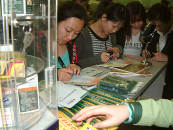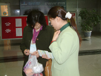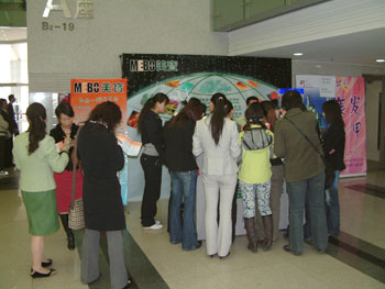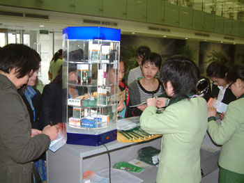 上午八时,随着上班高峰的来临,匆匆而过的上班族被再生养生营销集团的展台深深吸引,纷纷驻足,进行咨询。一时间,整个大厅里人声鼎沸,有的先来者趴在展台上,认真填写问卷调查表,同时向再生健康咨询员询问一些有关胃肠的健康问题;有的性急者看到展台由于人多没地方填写调查表,就干脆以同伴的后背为垫板开始填写;有的围在旋转产品展台前观看产品,兴奋的讨论、咨询。有几个年龄大点的客户不只自己咨询胃肠健康问题,还把同伴介绍过来询问,再生养生营销集团的一线人员热情地给予了解答。