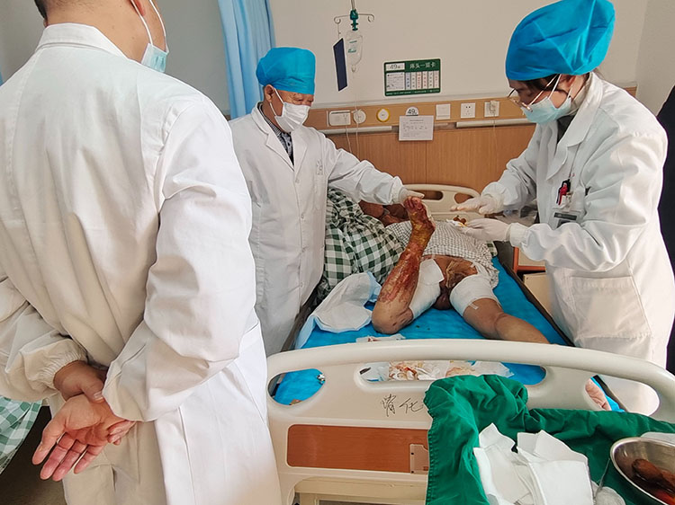 1月6日,应新绛县人民医院外科急会诊邀请,《中国烧伤创疡杂志》常务编委、烧伤创疡再生医疗技术临床专家赵瑞庆教授前往该院会诊一例右前臂沸水烫伤患者,现场进行创面处置并制定后续治疗计划,详细讲解了相关注意事项。