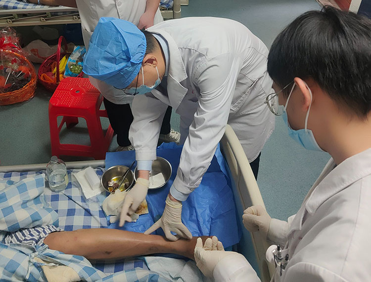 12月2日,中国中西医结合学会烧伤专业委员会常务委员、《中国烧伤创疡杂志》副总编辑王洪生教授,来到天河区龙洞人民医院会诊糖足病人,受到家属和医院的感谢和赞誉。