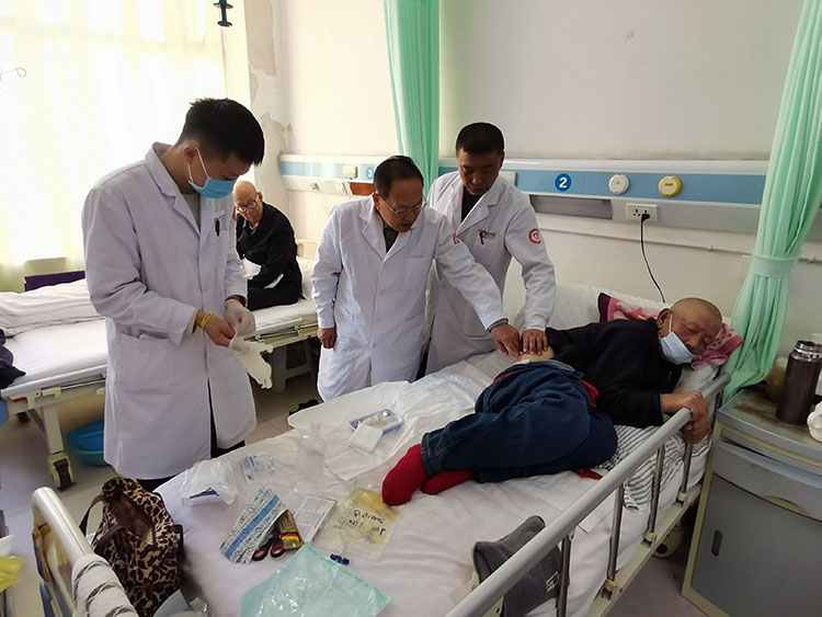 2025年12月3日,《中国烧伤创疡杂志》编委、烧伤创疡再生医疗技术临床专家张强主任应邀到访湖北宜昌国药西陵医养结合医院,与科室李慧琼主任等共同会诊四例压力性损伤创面患者。张强主任就黑痂清创要点、多发性高龄患者创面换药注意事项及营养支持方案等提供了专业指导,受到全体医护人员的一致好评。