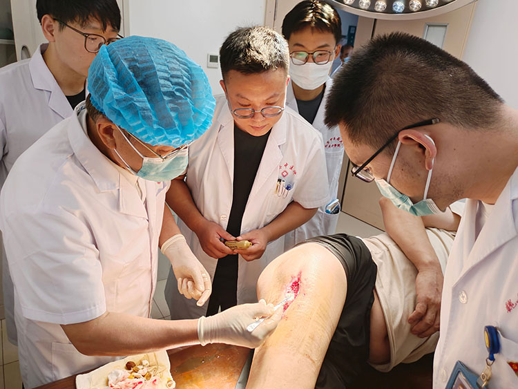 2025年8月22日,受太和县人民医院邀请,《中国烧伤创疡杂志》编委、烧伤创疡再生医疗技术临床专家张强,到科室会诊一例压疮患者和两例大面积烧伤患者。