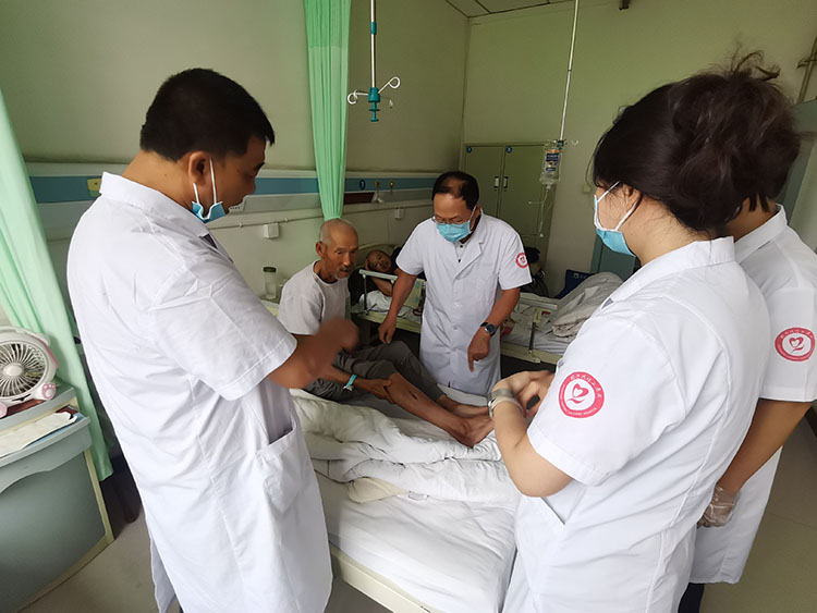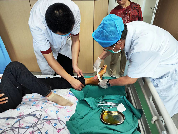 8月28日,《中国烧伤创疡杂志》常务编委、烧伤创疡再生医疗技术临床专家赵瑞庆,在该医院会诊了9例慢疮患者(糖足溃疡2例,压疮4例,会阴部深筋膜感染1例,臀部深筋膜感染1例,下肢外固定皮肤感染1例),并针对每例患者制定出个性化的治疗方法,受到当地医务人员及家属的热情称赞。