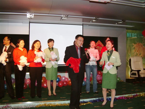 2月6日农历大年初九,沉浸在节日喜庆中的美宝人,笑逐言开,身着整齐的制服,愉快的云集首都北京,在尚都国际中心31层美宝国际集团多功能厅胜利召开了集团2006年工作会议。